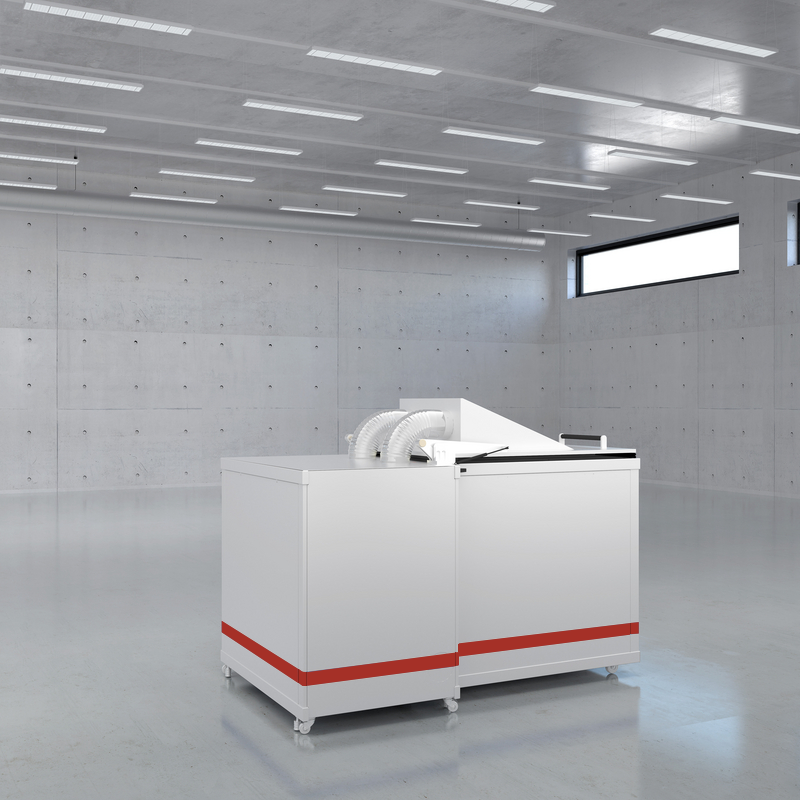 Highly stable paper path, running up to 50,000 documents in A4 per hour. Multi gains up to 2-up can be processed at a web width of 560 mm. Gross formats will be cropped 4-sided to the net format. The cutter works at the horizontal (slit and gutter cut) and vertical cuts at full speed. Waste sheets will divert by the whitepaper-management. The use of highly durable knives allows long maintenance intervals.