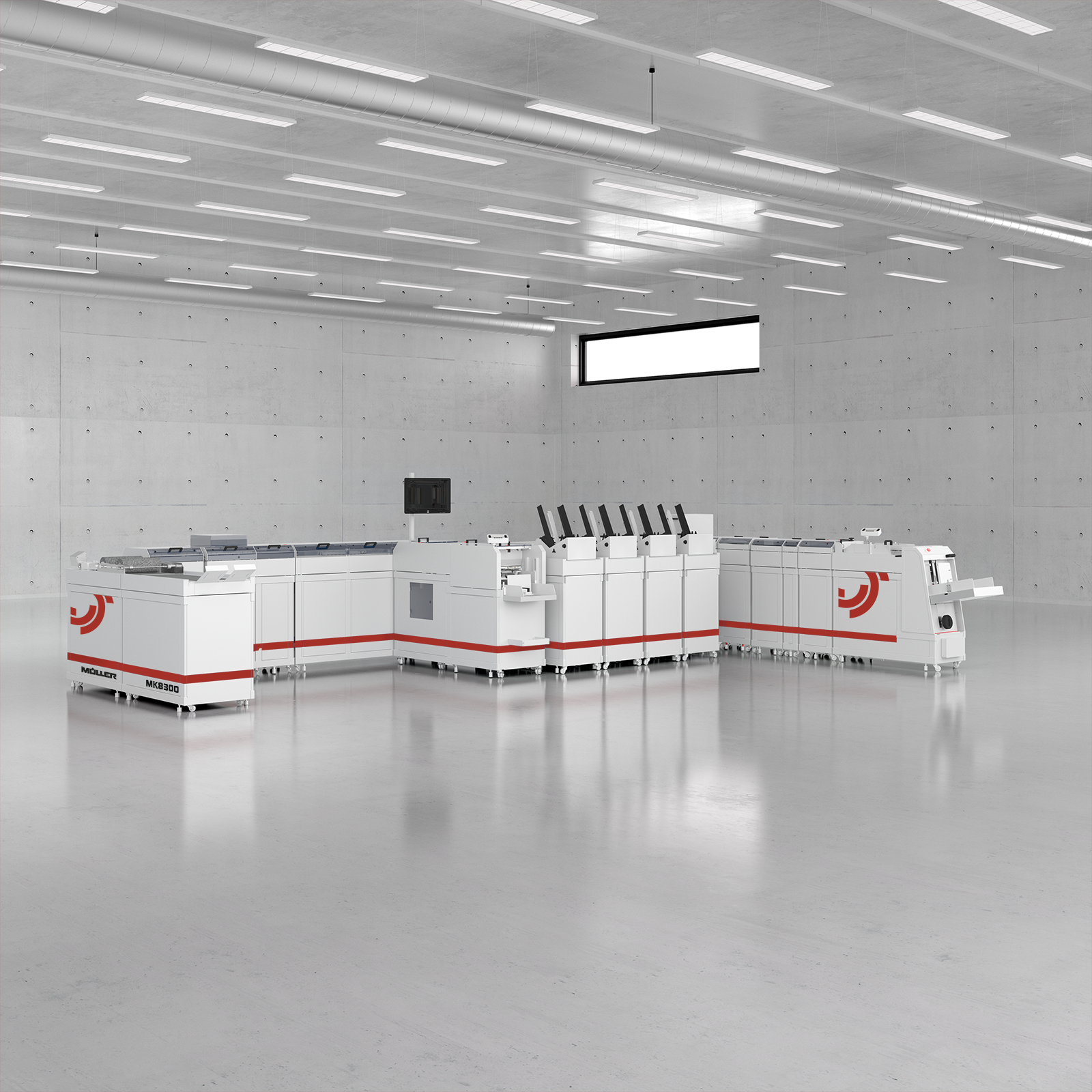 Thanks to simple and fast job set-up for format changes and ultimate flexibility due to the modular design, the Müller MK8300 adapts perfectly to increasingly complex applications. In particular, the multi-channel system from Müller, which is freely configurable from 2 to 15 stations, enables this unique flexibility. This allows multi-channel applications with reading and enclosures to be produced in any order. Whether as a cut-sheet or from the web, with or without reading, un- or prefolded enclosures – almost anything is possible. Nearly all transaction applications from personalized large and small jobs to direct mail applications can be handled with the Müller MK8300. The intuitive Müller software provides the necessary security and guarantees complete traceability throughout the entire production process.